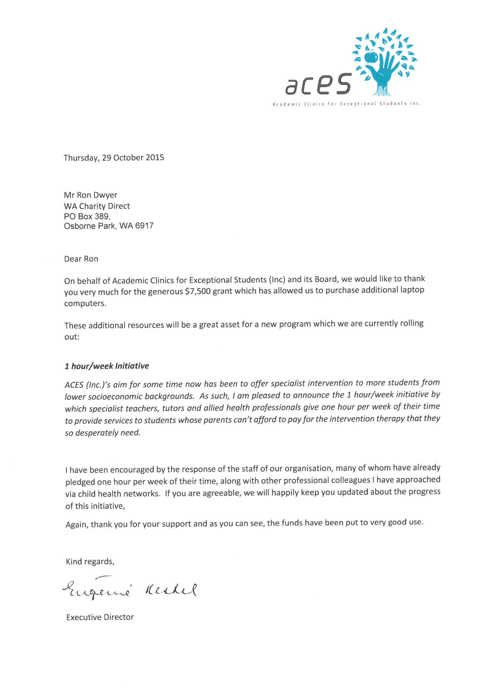 WA Charity Direct was pleased to assist with this expansion and funded 5 additional computers. The additional computers will allow ACES to expand their services to provide intervention to a greater number of students with learning disorders.
